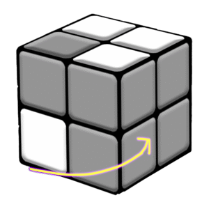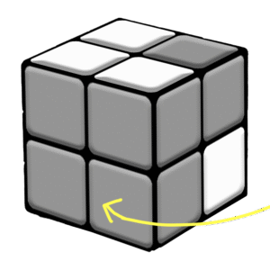 The 3rd step for solving a 2x2x2 Rubik’s Cube is to make a whole side of yellow.
