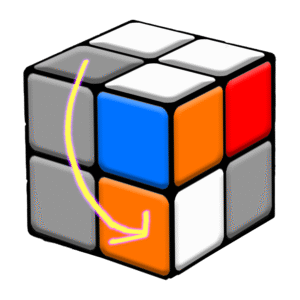 Corner Permutation Sequence: Push the right side down R’, front side goes clockwise F, push the right side down again R’, back twice B2, pull the right side up R, front side goes anticlockwise F’, push the right side down once more R’, front twice F2, right twice R2.