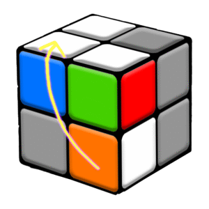 The 4th and final step for solving a 2x2x2 Rubik’s Cube is to swap around a couple of pieces in the top layer to complete the puzzle.